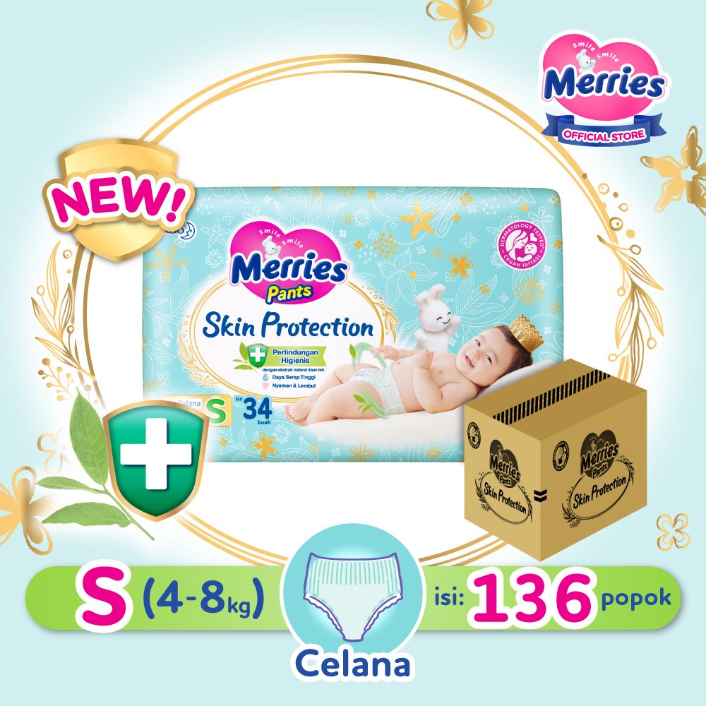 1. Merries Skin Protection Popok bayi Celana S 34 Carton - Perlengkapan Bayi / Diapers Pants