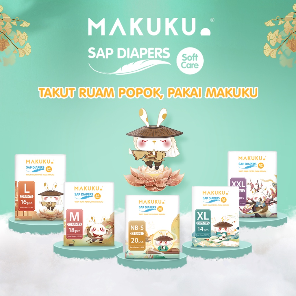1. [1 PACK] MAKUKU SAP Diapers Soft Care Pants Ukuran NB-S/M/L/XL/XXL Popok Bayi Anti Gumpal Super Dry