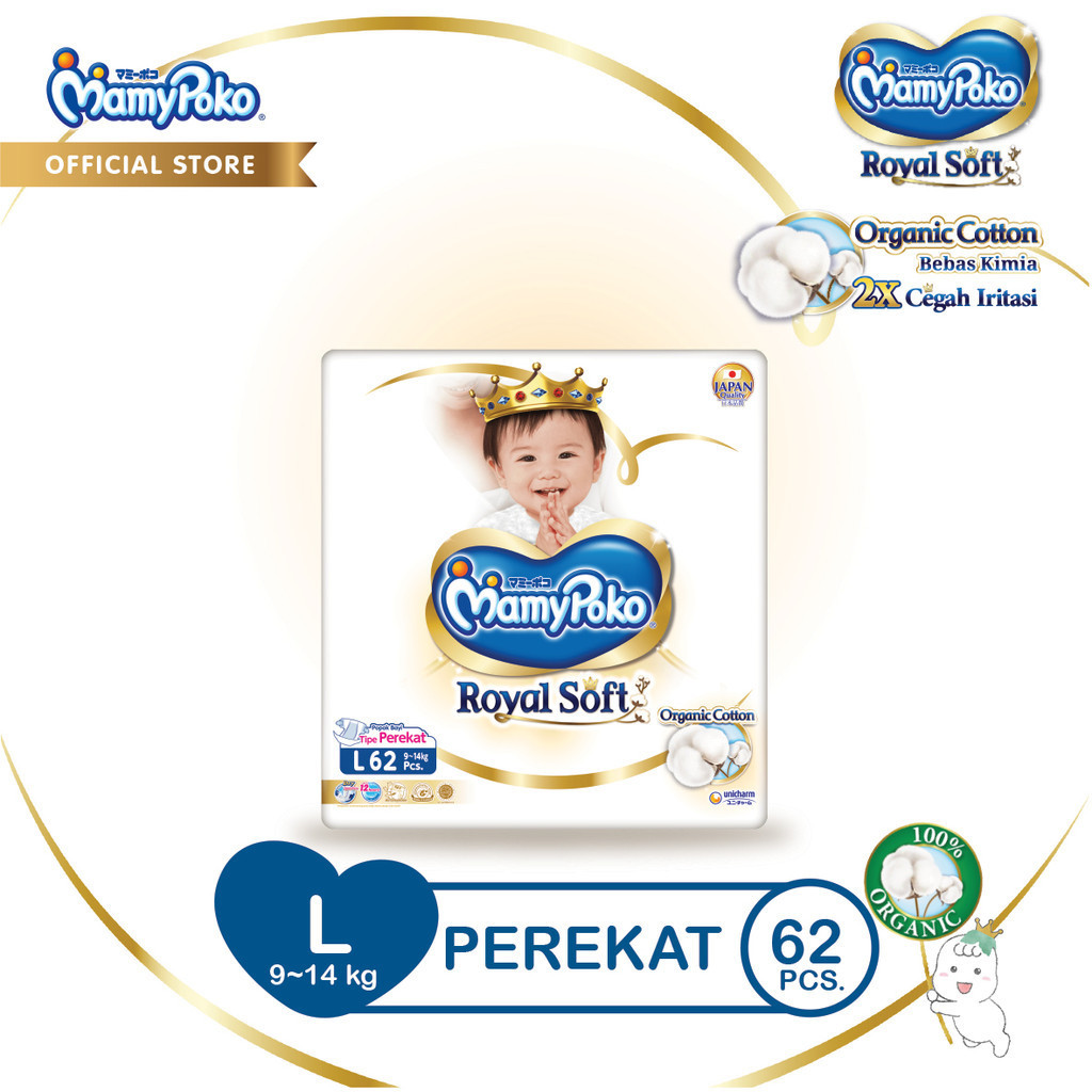 2. MamyPoko Royal Soft Organic Cotton - L 62 - Popok Tape