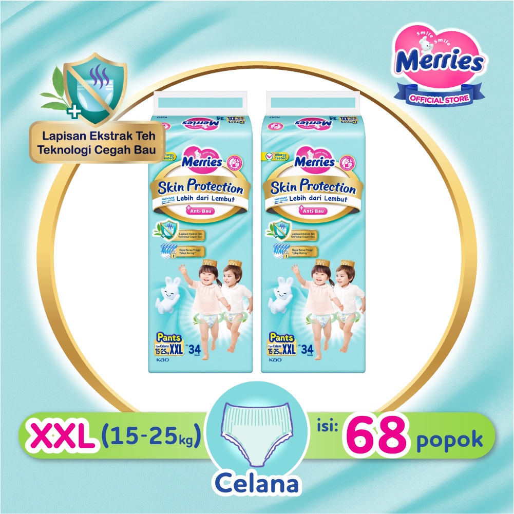 3. Merries Skin Protection Popok Perlengkapan Bayi Anti Bau Tipe Celana (15-25)kg XXL34 x2